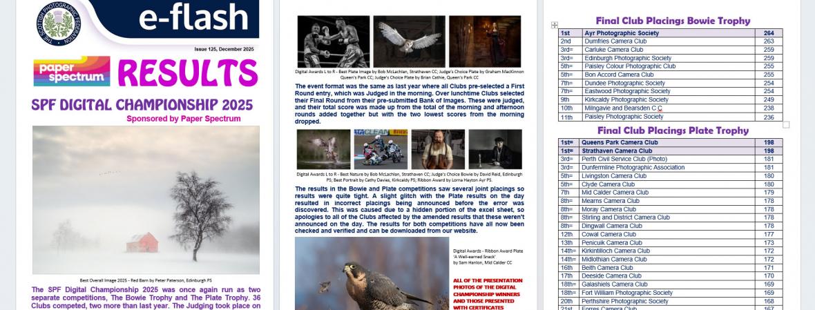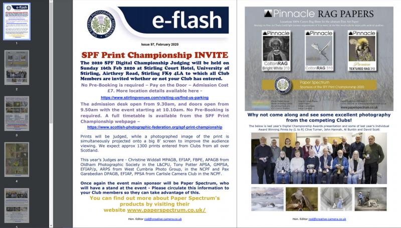 The SPF e-flash newsletter is designed to keep all of our Clubs and their members up to date with what is going on in Scottish Photography. It's not just for Club Committee members, it's designed to have something for everyone.