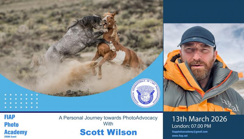 Presented by the FIAP Photo Academy's Free Online Events on Friday 13th March 2026 at 7pm via zoom is 'A Personal Journey towards PhotoAdvocacy' with Scott Wilson.